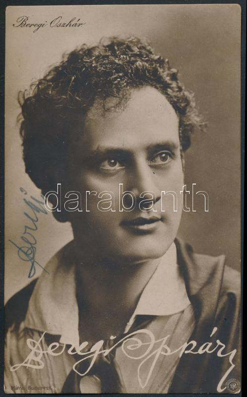 Leírás: Beregi Oszkár (1876-1965) színész, rendező ceruzás aláírása őt ábrázoló fotólapon