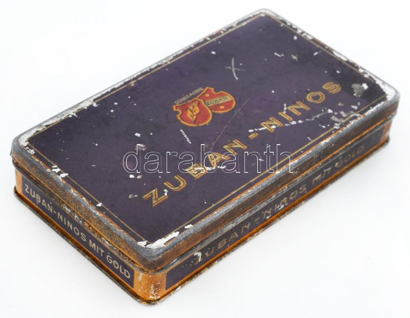 Leírás: Zuban-Ninos cigaretta doboz, fém, kopott, 7×13 cm