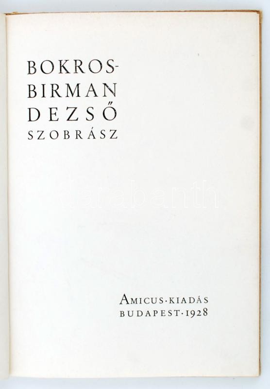 Karinthy Frigyes et al.: Bokros-Birman Dezső szobrász. Bp., 1928, Amic... https://www.darabanth.com/hu/251-Gyorsarveres/251.0/Festmeny-mutargy-papirregiseg-egyeb/Konyvek-Epiteszet-muveszet~600027/Karinthy-Frigyes-et-al-Bokros-Birman-Dezso-szobrasz-Bp-1928-Amicus-Serult-gerincu-karton~II1212286