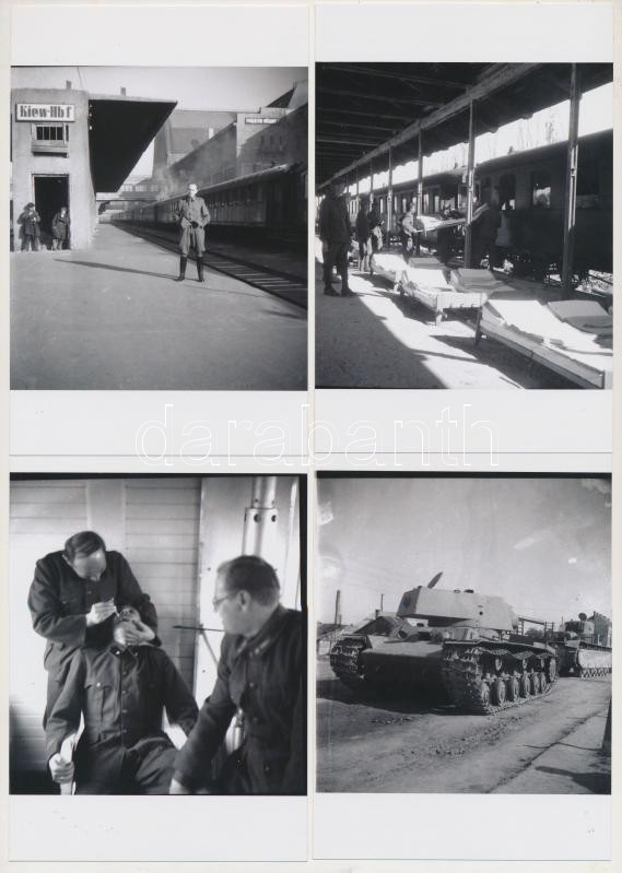 1942 Sebesült szállító vonat személyzete, tankok, ágyúk a II. vh-ból, Thöresz Dezső (1902-1963) hagyatékában őrzött negatívokról készült 8 db mai modern nagyítás, 15x10 cm-es fotópapírra