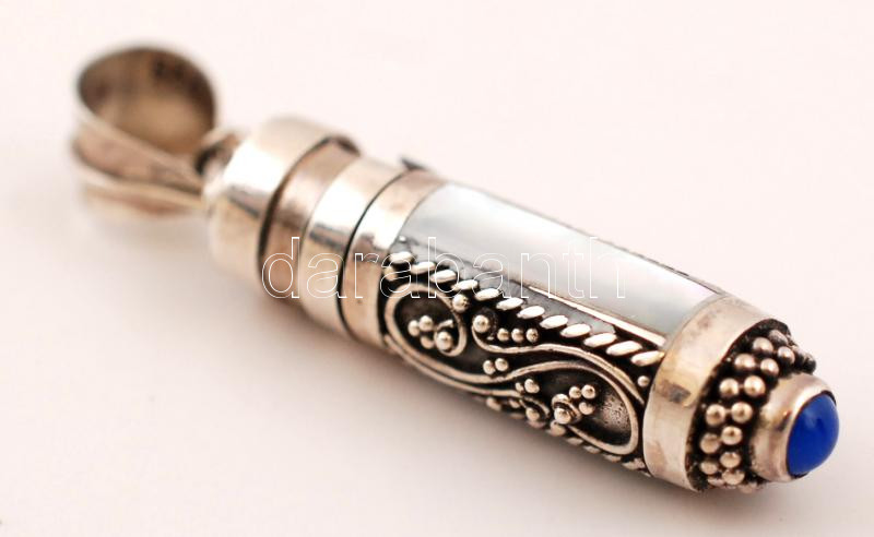 Leírás: Ezüst(Ag) parfümtartó medál, gyöngyház díszítéssel, br: 3,9 g