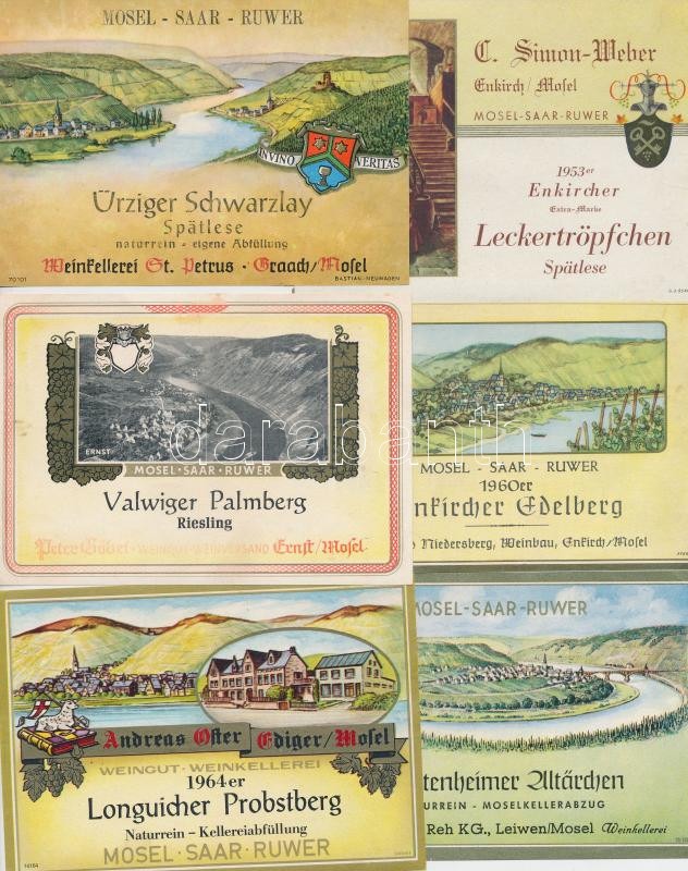Leírás: Mosel- Saar- Ruwer borcímkék, különböző méretben és minőségben, 25db