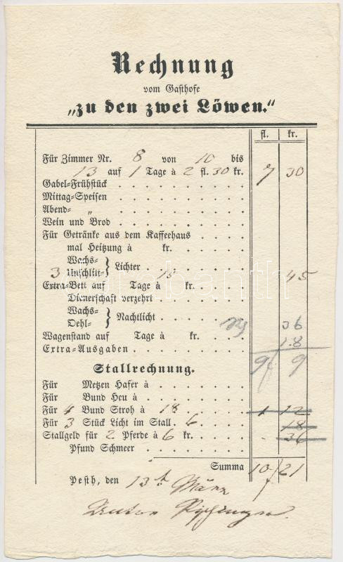 cca 1790 Pest, Számla a Két oroszlán fogadóból https://www.darabanth.com/hu/251-Gyorsarveres/251.0/Festmeny-mutargy-papirregiseg-egyeb/Nyomtatvanyok~600008/cca-1790-Pest-Szamla-a-Ket-oroszlan-fogadobol~II1213397