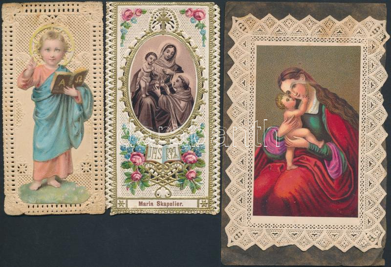 Leírás: cca 1900-20 Csipkés szentképek apró hibával, 3db, különböző méretben és minőségben, cca 11x7cm