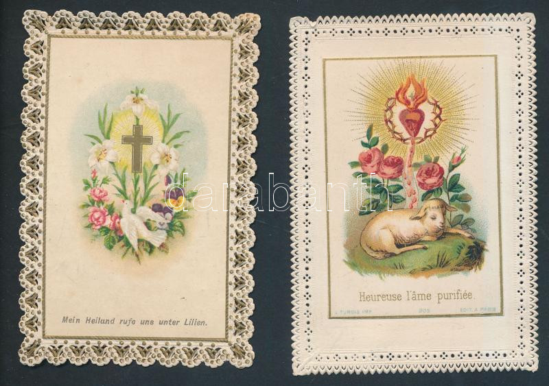Leírás: cca 1920-30 Csipkés szentkép,2db,cca 8x5cm