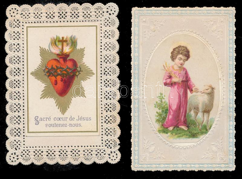 Leírás: cca 1920-30 Csipkés szentkép,2db,cca 8x5cm