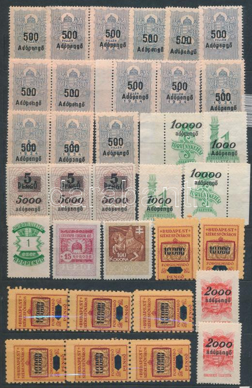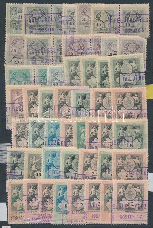 Leírás: Kb. 850 db magyar az 1800-as évekből + 42 db francia okmánybélyeg, illetékbélyeg és egyéb parafilatélia, 10 lapos közepes berakóban
