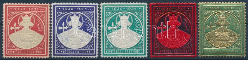 Leírás: 1931 Szent Imre "Könyörögj érettünk!" 5 klf színű levélzáró