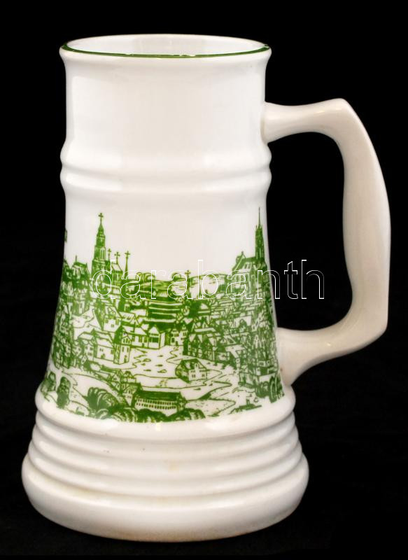 Leírás: Alföldi matricás korsó, kopott, jelzett, m:17 cm