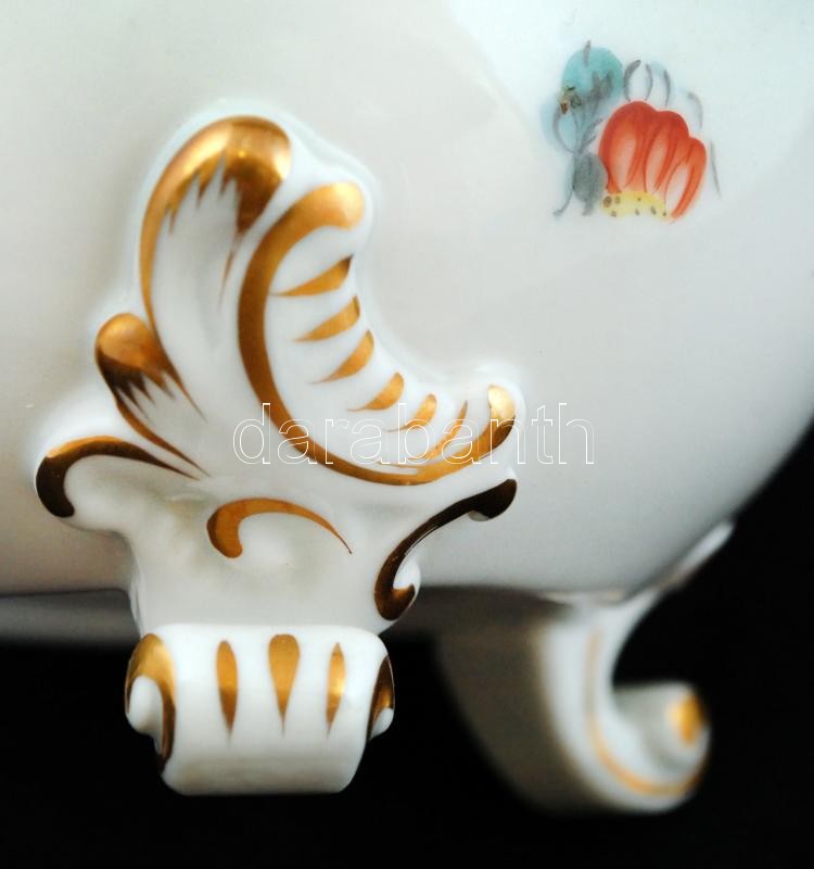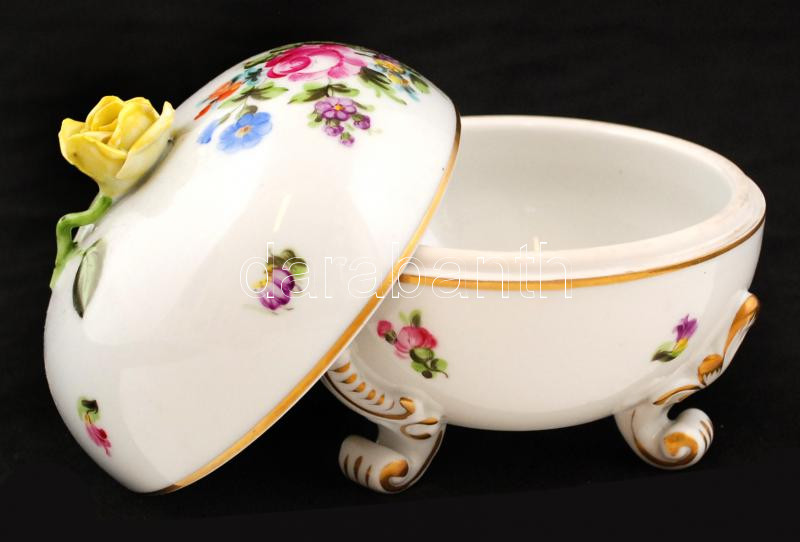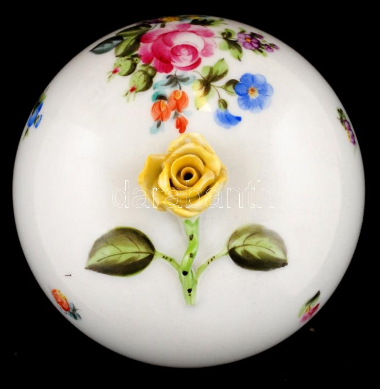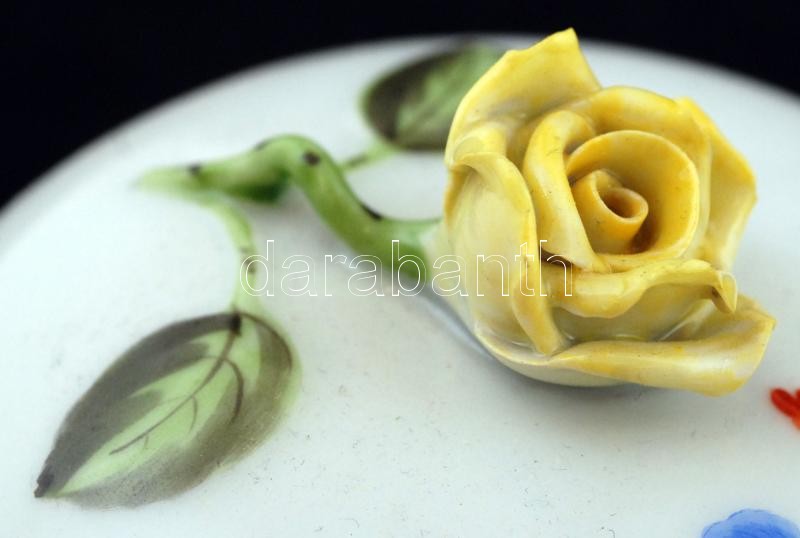 Leírás: Herendi rózsás bonbonier, kézzel festett, jelzett, hibátlan, m:12 cm, d:11 cm