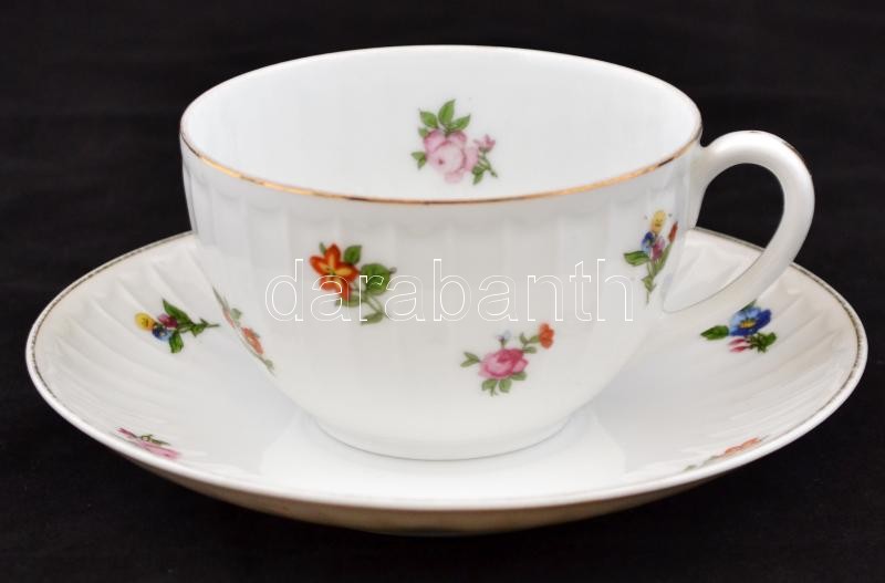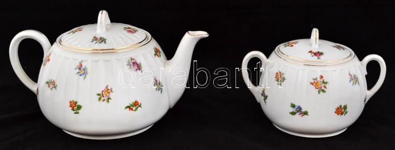 Leírás: Hüttl Tivadar hiányos teás készlet, kézzel festett, jelzett (Epiag), egyik csészealjon hajszálrepedések, kiöntön belül letöréssel, összesen: 9 db