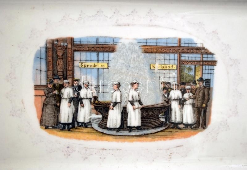 Leírás: MZ Austria Karlsbadi emlék tálca, matricás, jelzett, kopott, 15×48