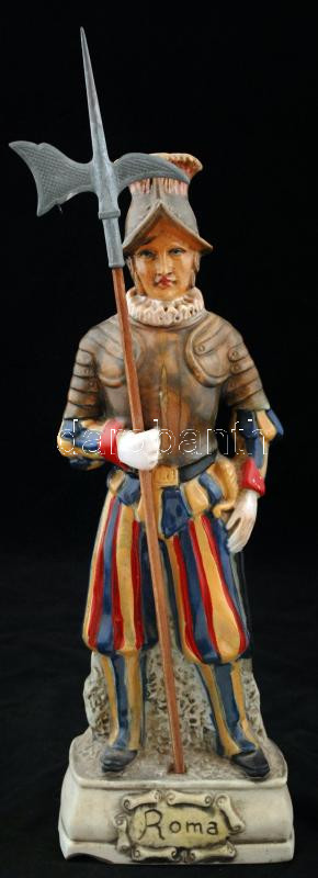 Leírás: Svájci gárdista Róma, porcelán szobor, sérült, m: 33 cm
