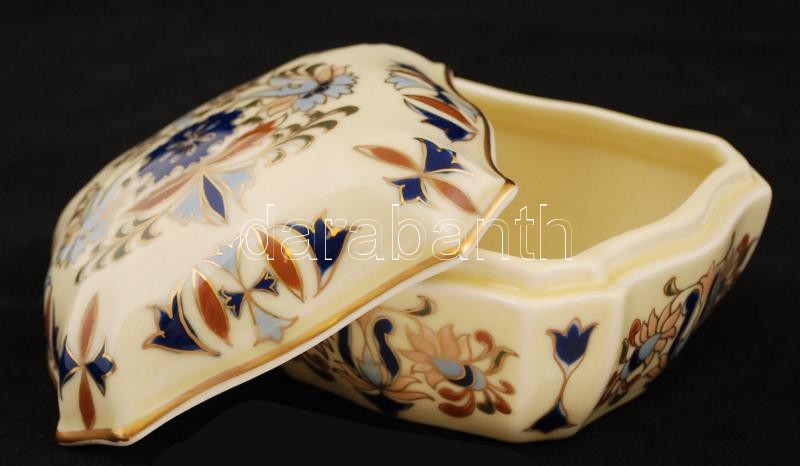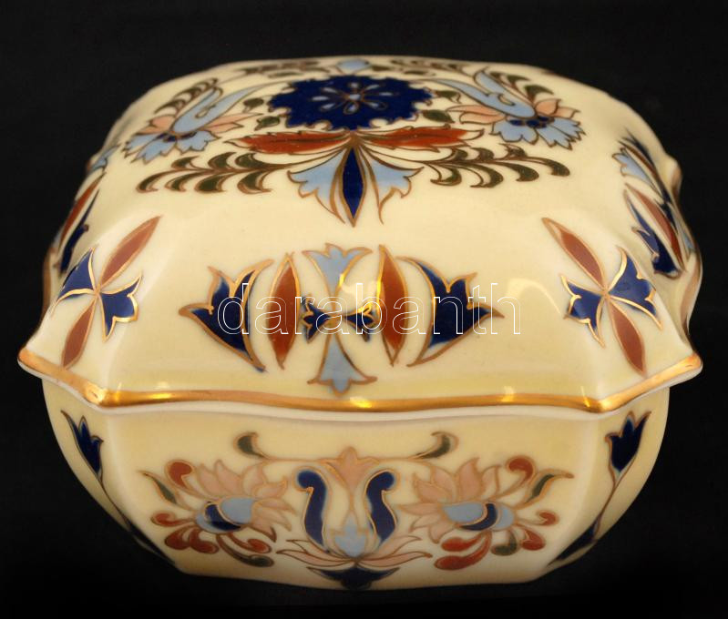 Leírás: Zsolnay búzavirág mintás dobozka, kézzel festett, jelzett, hibátlan, 10×10 cm