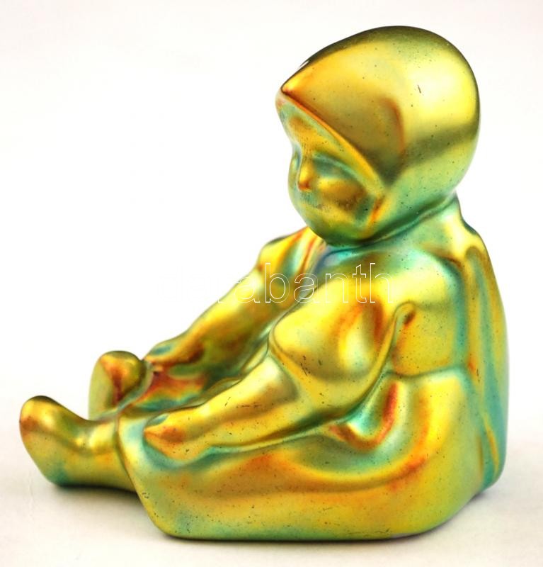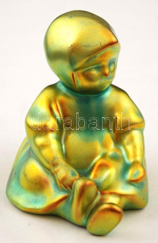 Leírás: Zsolnay eozin mázas kislány, kopásnyomokkal, jelzett, m: 7,5 cm