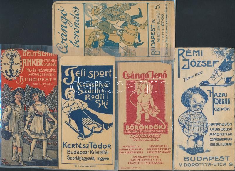 Leírás: 11 db különféle régi magyar számolócédula: gyermekruházat, téli sport szaküzlet, bőröndös, stb., köztük egy újvidéki is