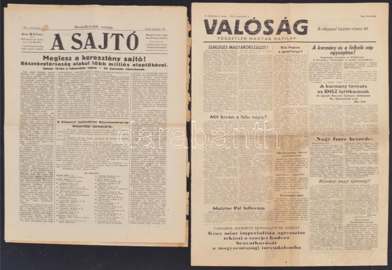 1918-1946 5 db klf újság első számainak egyike. https://www.darabanth.com/hu/251-Gyorsarveres/251.0/Festmeny-mutargy-papirregiseg-egyeb/Ujsagok-elso-szamai~600012/1918-1946-5-db-klf-ujsag-elso-szamainak-egyike~II1214612