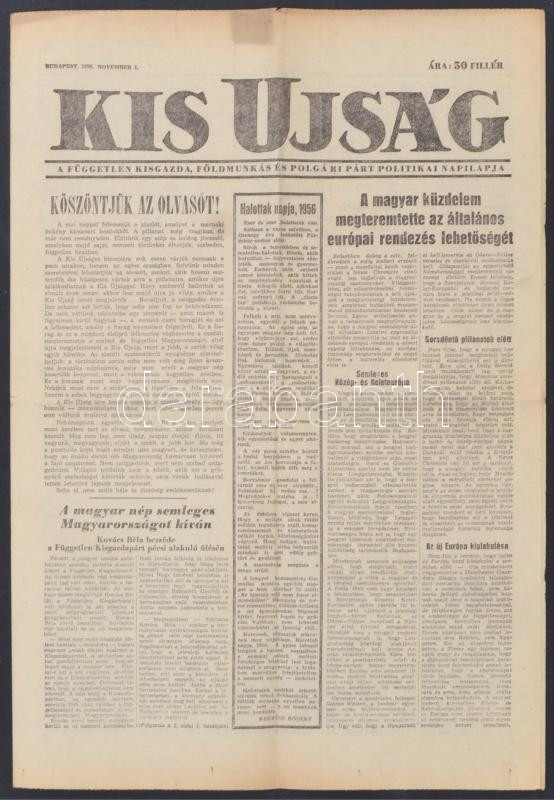 Leírás: 1956 A Kis Ujság c. újság 1. induló száma az új folyamból