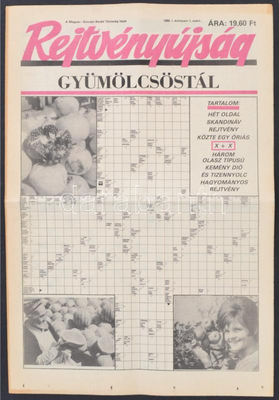 Leírás: 1989 A Rejtvényújság. A magyar-szovjet baráti társaság lapja c. rejtvény újság 1., induló száma