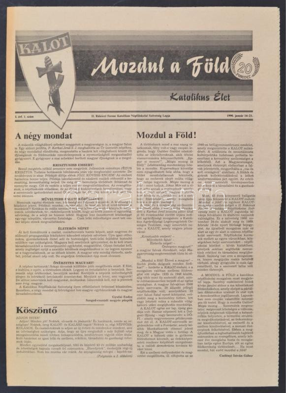 1990 KALOT Mozdul a Föld c. újság 1., induló száma https://www.darabanth.com/hu/251-Gyorsarveres/251.0/Festmeny-mutargy-papirregiseg-egyeb/Ujsagok-elso-szamai~600012/1990-KALOT-Mozdul-a-Fold-c-ujsag-1-indulo-szama~II1214642
