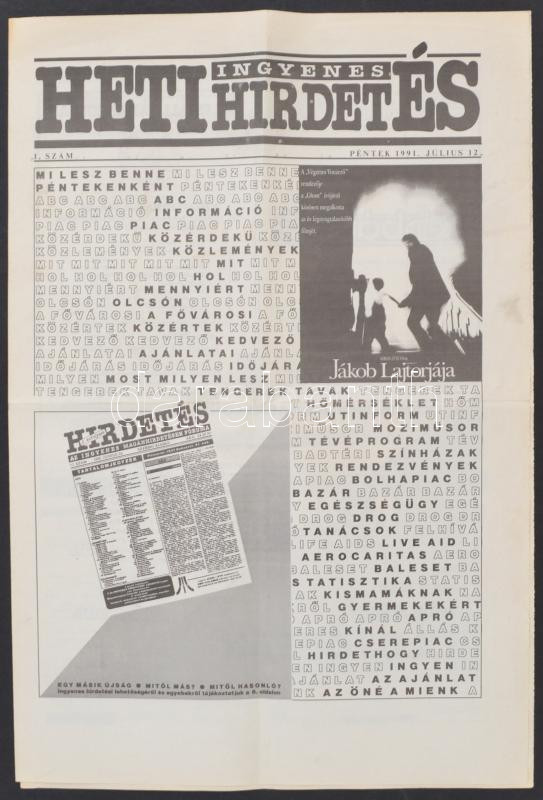 Leírás: 1991 Az Ingyenes hirdetés c. újság 1. induló száma