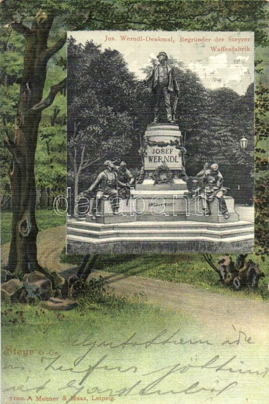 Leírás: Steyr, Josef Werndl Denkmal / statue, park, tree (EK)