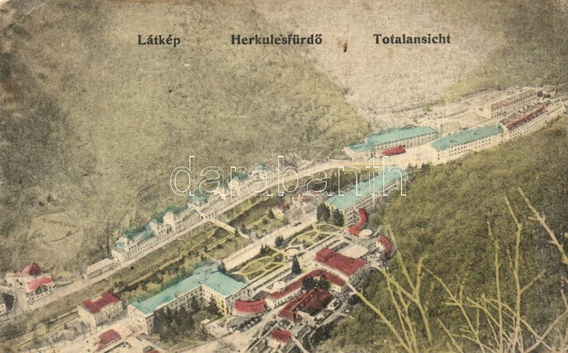 Herkulesfürdő, Baile Herculane; látkép / panorama view (EB) https://www.darabanth.com/hu/251-Gyorsarveres/251.0/Kepeslapok/Erdely~400006/Herkulesfurdo-Baile-Herculane-latkep-panorama-view-EB~II1211531