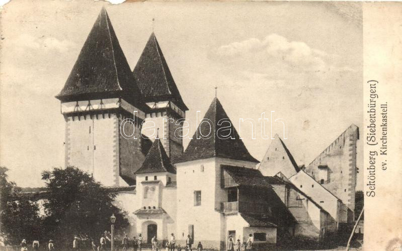 Lesses, Schönberg; Ev. Kirchenkastell / Evangelist church (wet damage) https://www.darabanth.com/hu/251-Gyorsarveres/251.0/Kepeslapok/Erdely~400006/Lesses-Schonberg-Ev-Kirchenkastell-Evangelist-church-wet-damage~II1212488