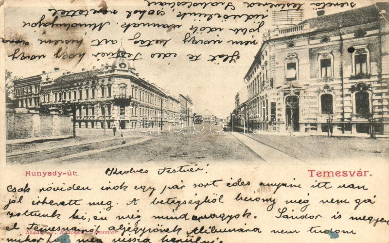 Temesvár, Timisoara; Hunyady út, kiadja F. Kaschka / street (EK) https://www.darabanth.com/hu/251-Gyorsarveres/251.0/Kepeslapok/Erdely~400006/Temesvar-Timisoara-Hunyady-ut-kiadja-F-Kaschka-street-EK~II1213240