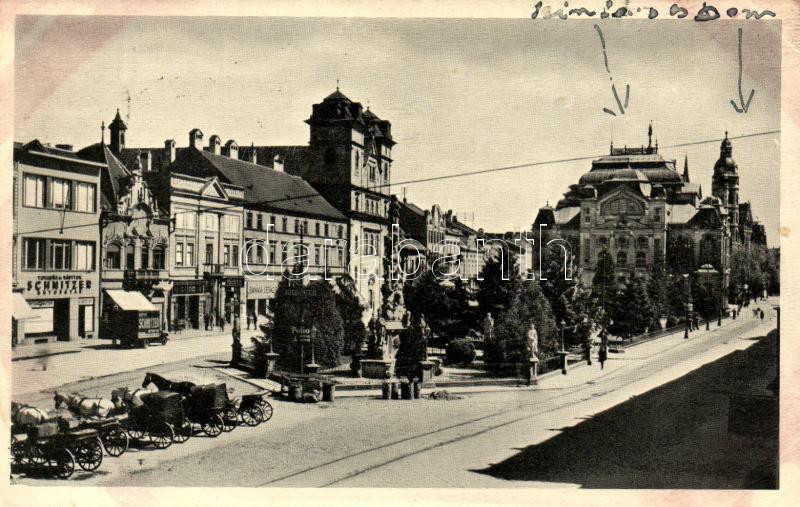 Kassa, Kosice; Stefánik utca, színház, bank, Schnitzer üzlete / street... https://www.darabanth.com/hu/251-Gyorsarveres/251.0/Kepeslapok/Felvidek~400007/Kassa-Kosice-Stefanik-utca-szinhaz-bank-Schnitzer-uzlete-street-view-theater-bank-shop~II1128475