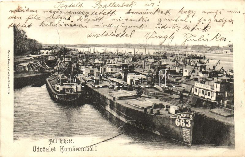 Komárom, Komárno; Téli kikötő, M.F.T.R 663, 673, 638 számú uszályok / ... https://www.darabanth.com/hu/251-Gyorsarveres/251.0/Kepeslapok/Felvidek~400007/Komarom-Komarno-Teli-kikoto-MFTR-663-673-638-szamu-uszalyok-winter-harbor-barges~II1210534