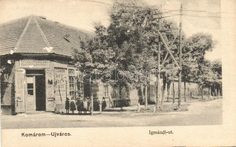 Komárom Újváros; Igmándi út, Kosch Bernát vegyeskereskedése / street, ... https://www.darabanth.com/hu/251-Gyorsarveres/251.0/Kepeslapok/Felvidek~400007/Komarom-Ujvaros-Igmandi-ut-Kosch-Bernat-vegyeskereskedese-street-corner-shop~II1210279