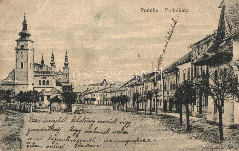 Podolin, Podolinec; utca, templom / street, church (b) https://www.darabanth.com/hu/251-Gyorsarveres/251.0/Kepeslapok/Felvidek~400007/Podolin-Podolinec-utca-templom-street-church-b~II1208880