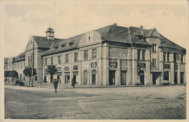 Leírás: Tornalja, Tornal'a; Városháza, kiadja Blumenthal Sándor, Roth üzlete, Halászi üzlete, Weisz üzlete / town hall, shops (tűnyom / pinhole)