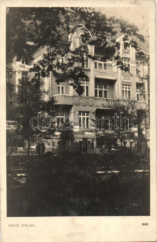 Trencsénteplic, Trencianske Teplice; Villa Corfu https://www.darabanth.com/hu/251-Gyorsarveres/251.0/Kepeslapok/Felvidek~400007/Trencsenteplic-Trencianske-Teplice-Villa-Corfu~II1211900