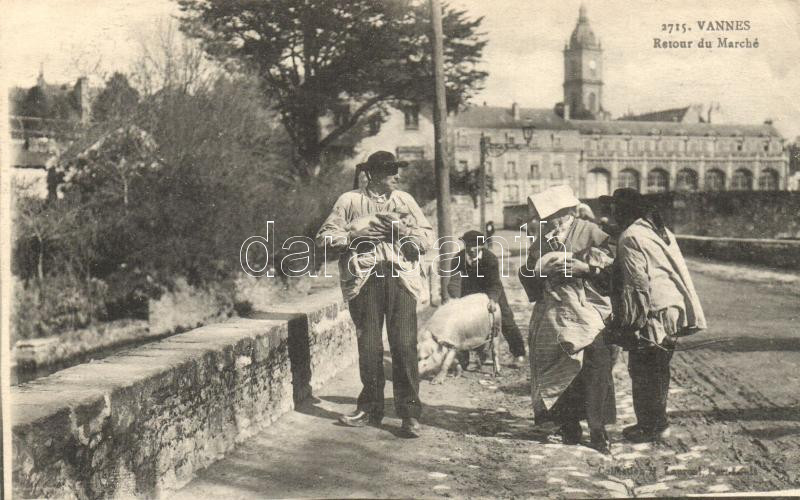 Vannes, Retour du Marché / from the market, folklore, pig merchants https://www.darabanth.com/hu/251-Gyorsarveres/251.0/Kepeslapok/Franciaorszag~400042/Vannes-Retour-du-Marche-from-the-market-folklore-pig-merchants~II1214191