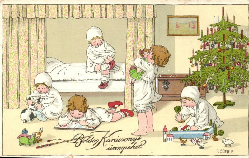 Leírás: Christmas, children, M. Munk No. 1412, s: Pauli Ebner (kis szakadás / small tear)