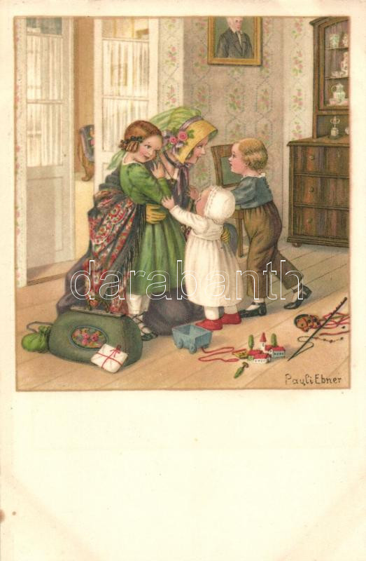Mother comes home to her children, August Röckl, No. 1395 s: Pauli Ebn... https://www.darabanth.com/hu/251-Gyorsarveres/251.0/Kepeslapok/Gyerek~400041/Mother-comes-home-to-her-children-August-Rockl-No-1395-s-Pauli-Ebner~II1211081
