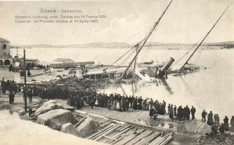 Leírás: 1908 Sibenik, Sebenico; Katastrofa parab. Lloyd Galatea / ship accident