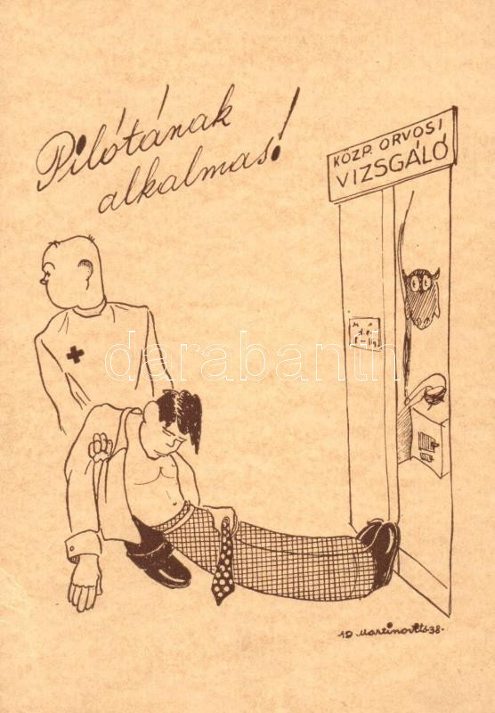 Leírás: 'Pilótának alkalmas!' Humoros magyar légierős grafikai képeslap / WWII-era Hungarian airforce humorous postcard s: Martinovits