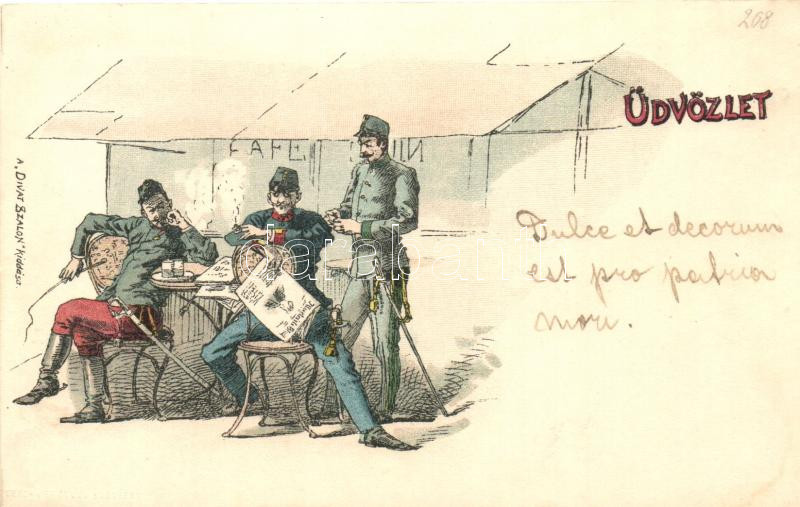 1898 Magyar honvéd huszárok; Üdvözlet, a Divat Szalon kiadása / Hungar... https://www.darabanth.com/hu/251-Gyorsarveres/251.0/Kepeslapok/Katonai~400063/1898-Magyar-honved-huszarok-Udvozlet-a-Divat-Szalon-kiadasa-Hungarian-soldiers-Gruss-aus~II1211696