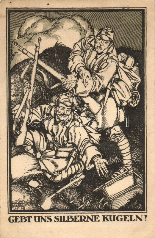 'Gebt uns sileberne kugeln!' / 'Give us silver bullets!... https://www.darabanth.com/hu/251-Gyorsarveres/251.0/Kepeslapok/Katonai~400063/Gebt-uns-sileberne-kugeln-Give-us-silver-bullets-Hungarian-WWI-military-propaganda-s-Dive~II1210670