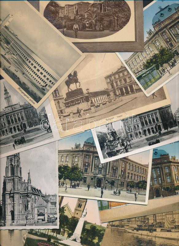 ~160 db RÉGI városképes képeslap az egykori Jugoszláv területekről, sok Belgrád, Abbázia, Újvidék és Szabadka lappal, néhány 'Visszatért' So. Stpl., vegyes minőség / ~160 old town-view postcards from the former Yugoslavian countries, lots of Belgrade, Abbazia, Novi Sad and Subotica, some So. Stpl., mixed quality