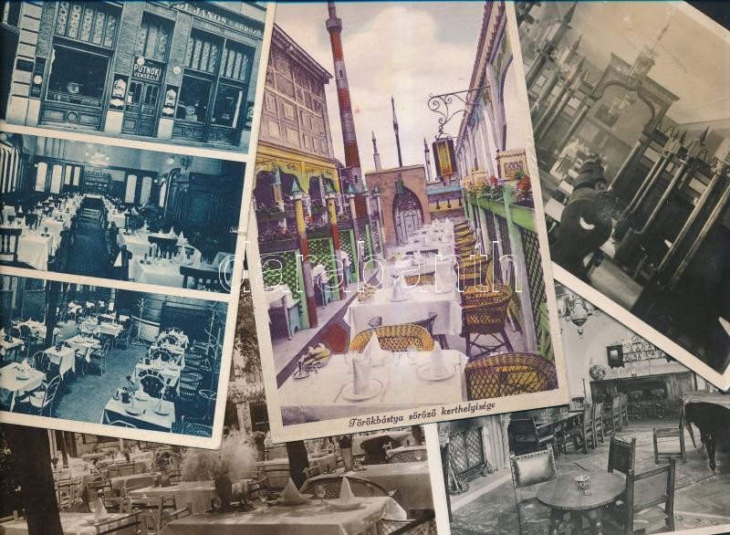 Leírás: Budapest, 6 db régi, városi éttermeket és sörözőket ábrázoló képeslap