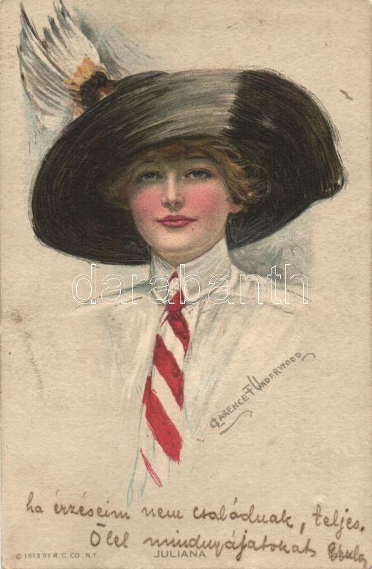 'Juliana', Lady with hat and necktie; R.C. Co. s: Clarence F... https://www.darabanth.com/hu/251-Gyorsarveres/251.0/Kepeslapok/Muvesz~400034/Juliana-Lady-with-hat-and-necktie-RC-Co-s-Clarence-F-Underwood~II1210016