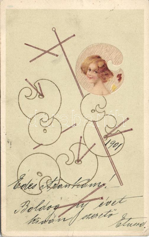 Lady, Art Nouveau, litho (EB)
