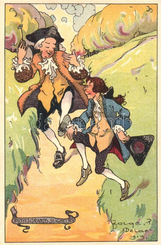 Leírás: Petits Grands Seigmeurs / Humorous art postcard, litho s: George P. de Laet