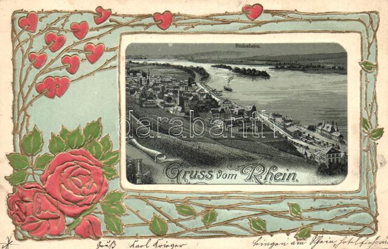 Leírás: Rüdesheim am Rhein, roses; Kunstanstalt Lautz & Isenbeck Art Nouveau, Emb. litho (fa)