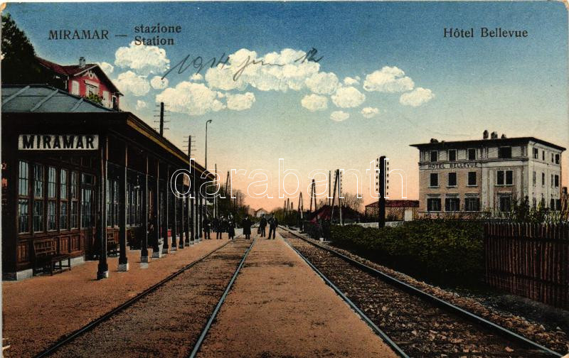 Trieste Miramare, Stazione, Station / railway station, Hotel Bellevue ... https://www.darabanth.com/hu/251-Gyorsarveres/251.0/Kepeslapok/Olaszorszag~400101/Trieste-Miramare-Stazione-Station-railway-station-Hotel-Bellevue-small-tear~II1210057