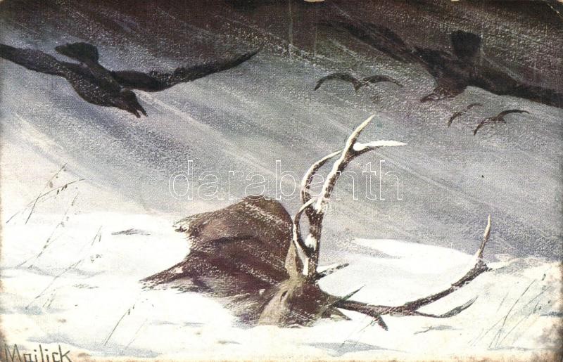 Leírás: 6 db RÉGI használatlan vadász motívum képeslap, 1 db litho, vegyes minőség / 6 old unused hunter themed motive postcards, with 1 litho, mixed quality